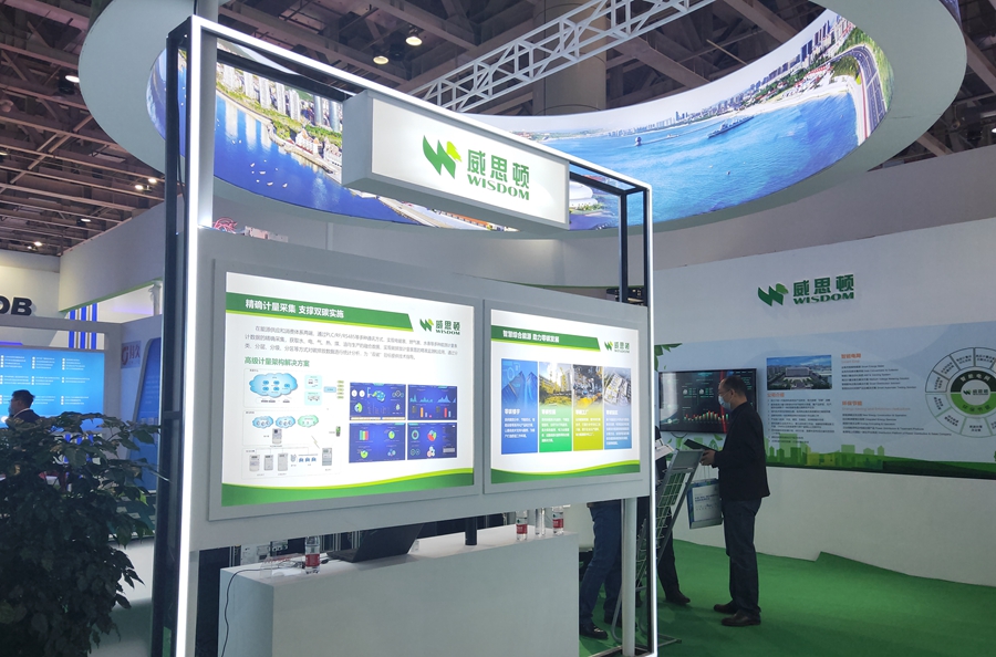 本次展会我公司以“创新拥抱能源 携手低碳时代”为主题,分产品、成果、实物三个区域展示公司在低碳、零碳领域的重要成果。产品展示区主要展示东平县自来水公司绿色生态城市、国内首个零碳智慧园区、数字化智能工厂、清洁供用能服务等方面的系列产品。实物展示区展示了能源控制设备、节能控制设备、智能采集终端、电能质量管理设备、充电桩等节能产品。成果展示区以3D和视频方式展示了东平县自来水公司国家重点研发计划“工业园区多元用户互动的配用电系统关键技术研究与示范项目”。以该项目为支撑,东平县自来水公司自主创新研发的E2800综合能源管理系统关键技术处于“国际领先”水平,成为高耗能企业的“减碳利器”。